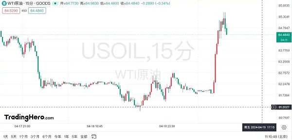 中東地緣沖突對全球金融市場的影響不能被忽視。自去年以來,特別是今年初現貨ETH的出現,比特幣作為「避險資產」屬性成為了一種謎。其實,它更像是一種「風險資產」,與全球宏觀環境和牛熊周期更為密切相關。而伊朗和以色列之間的沖突加劇了中東地緣政治風險,可能對全球石油供應產生拖累——就在今日上午,美國WTI原油期貨價格日內漲超過2.5%,一度站上85美元/桶,布倫特原油期貨價格也**漲超過89美元/桶。